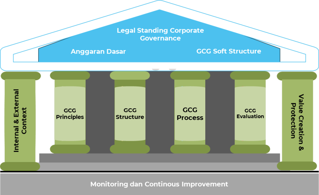 Untuk mencapai tujuan tersebut, Perseroan berkomitmen untuk menerapkan prinsip-prinsip dasar tata kelola perusahaan yang baik, yaitu transparansi (transparency), akuntabilitas (accountability), responsibilitas (responsibility), independensi (independency), dan kewajaran (fairness). Prinsip-prinsip ini diterapkan secara konsisten dalam setiap aspek kegiatan operasional. Komitmen tersebut diwujudkan melalui penerapan prinsip-prinsip Good Corporate Governance (GCG), sebagaimana berikut:
