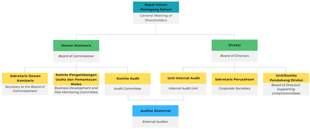 Struktur tata kelola Perseroan mengacu pada Undang-Undang Nomor 40 Tahun 2007 tentang Perseroan Terbatas, di mana organ perusahaan terdiri atas tiga unsur utama, yaitu:
